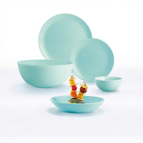 سرویس غذاخوری ۲۶پارچه ارکوپال لومینارک اصل فرانسه مدل گرد رنگ سبز ابی