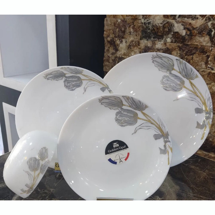 سرویس ارکوپال ۲۶ پارچه گرد طرح لاله طوسی