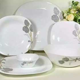 سرویس ۲۶ پارچه ارکوپال مربع طرح لاله خاکستری