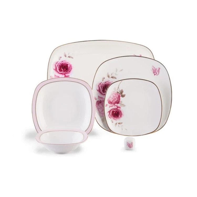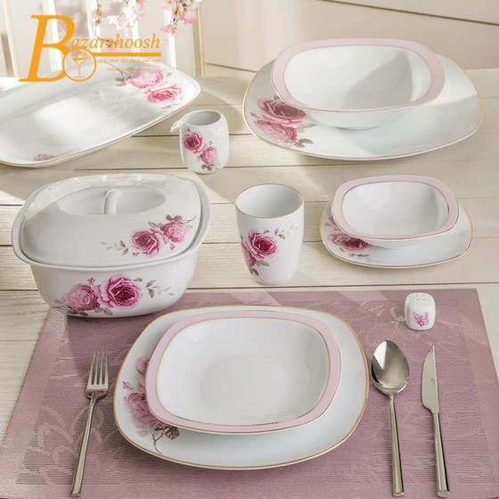 سرویس غذاخوری ۶ نفره چینی زرین ایران مدل رز فلاور قالب مربع