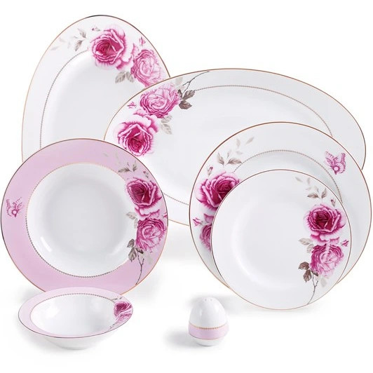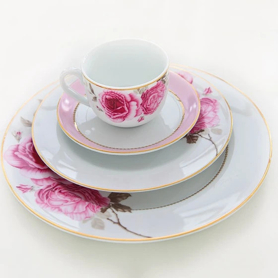 سرویس شش نفره چینی زرین مدل گرد طرح رز فلاور