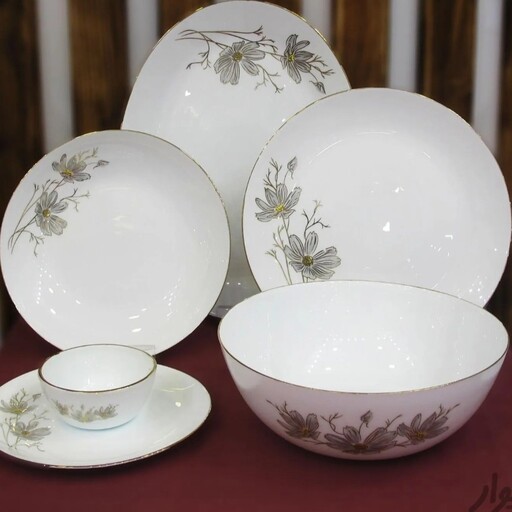 سرویس ارکوپال ۲۶ پارچه طرح ژالین طلایی و طوسی